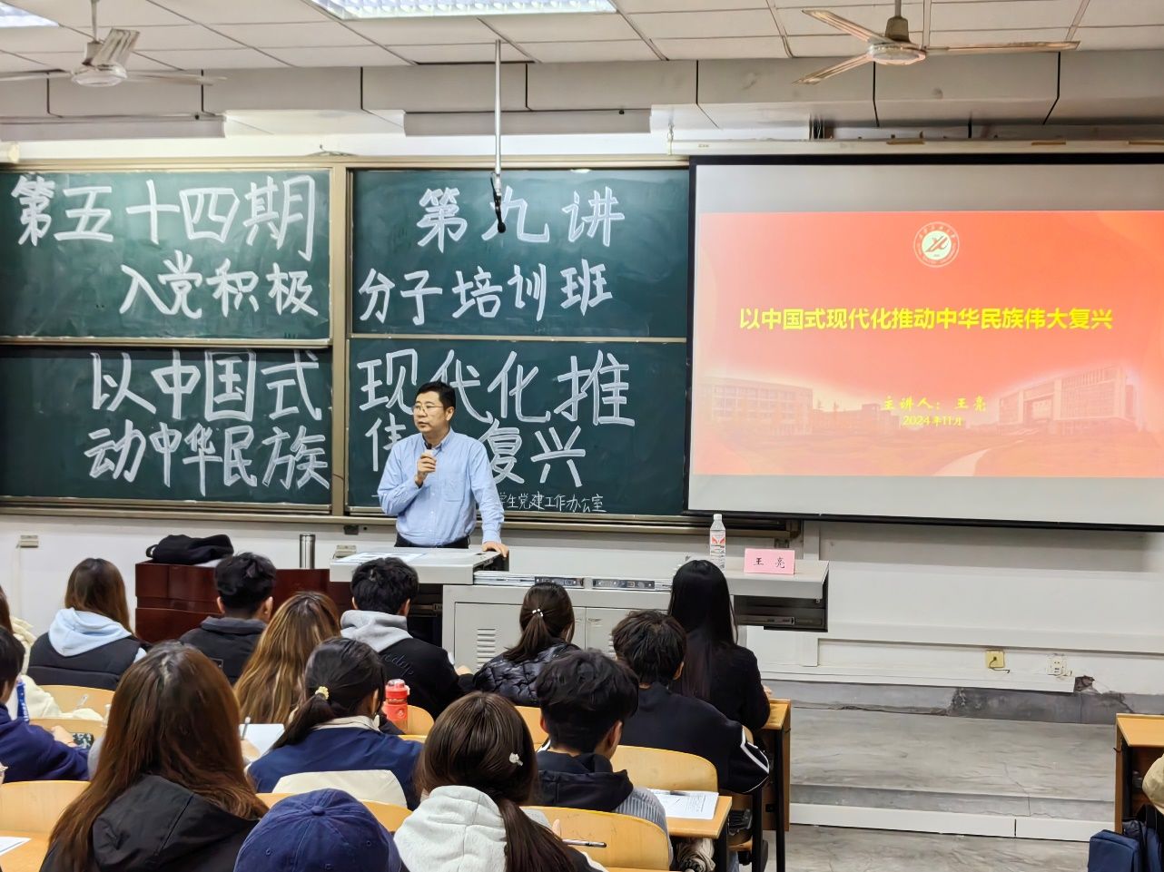 為深入學(xué)習(xí)貫徹習(xí)近平新時代中國特色社會主義思想,深刻領(lǐng)會中國式現(xiàn)代化的本質(zhì)要求,11月13日,經(jīng)濟(jì)管理學(xué)院第五十四期入黨積極分子培訓(xùn)班第九講在鄠邑校區(qū)博覽樓A134教室舉行。本次黨課由黨委學(xué)生工作部部長、武裝部部長兼穩(wěn)定安全辦公室副主任王亮主講,第五十四期全體入黨積極分子參加。
