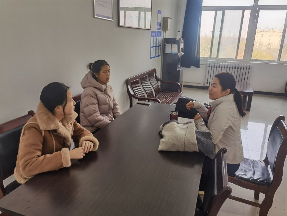 2025年12月9號(hào),李繼翠老師在A區(qū)四樓教師休息室約見了商管2201班高欣草和雷璇同學(xué)。