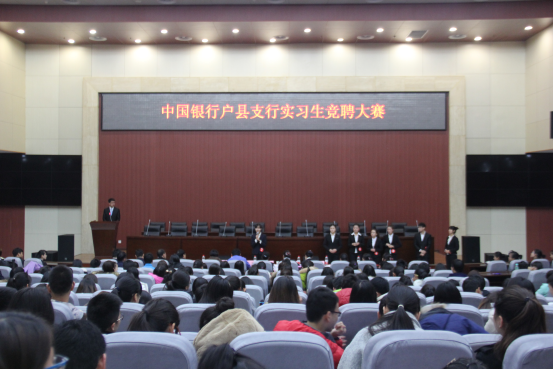 11月24日19時,經(jīng)濟管理學院在新校區(qū)弘石學術(shù)報告廳舉辦了中國銀行戶縣支行實習生競聘大賽活動。出席此次活動的嘉賓有中國銀行支行主任賀進,客戶經(jīng)理李旭、關(guān)天嬌以及經(jīng)濟管理學院團委書記劉冰老師、肖焰老師等。