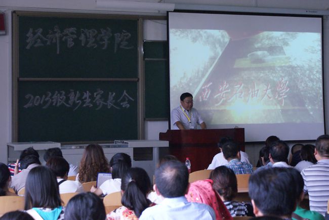 上,首先馬書記對新生家長的到來表示了歡迎,并為各位家長及新生介紹了西安石油大學(xué)校史以及經(jīng)濟(jì)管理學(xué)院的概況;其次趙院長詳細(xì)介紹了我院的專業(yè)設(shè)置以及