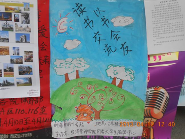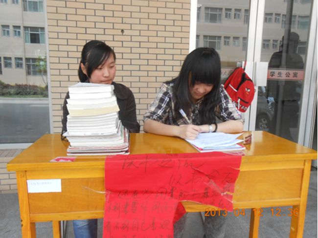 為解決大學(xué)生面臨因課外時(shí)間太多而不知如何合理利用的問題,使得其更好的參與社交活動,擴(kuò)大自己的知識面,豐富課余生活,開闊視野,培養(yǎng)對文學(xué)的喜愛,2012年4月14日,經(jīng)濟(jì)管理學(xué)院大學(xué)生服務(wù)中心開啟“讀書交流,以書會友”活動。