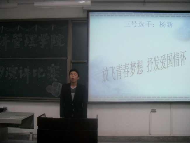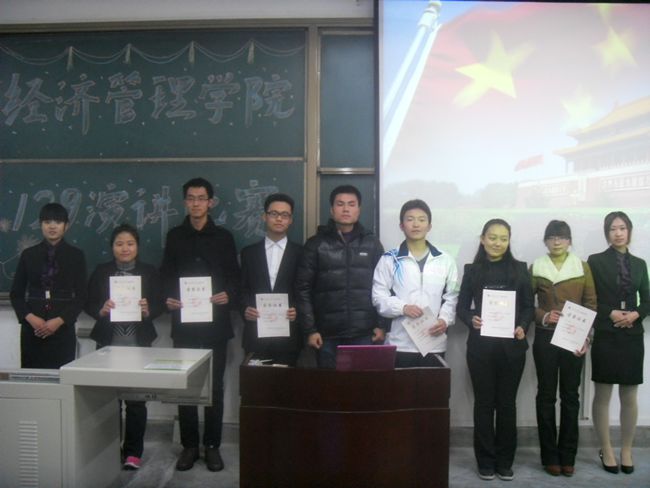 出席本次演講比賽的嘉賓和評(píng)委有:經(jīng)濟(jì)管理學(xué)院2012級(jí)輔導(dǎo)員武威老師,校廣播站新聞部部長(zhǎng)王安屹,校團(tuán)委宣傳部副部長(zhǎng)馬慧艷,經(jīng)管通訊社社長(zhǎng)李琦,院