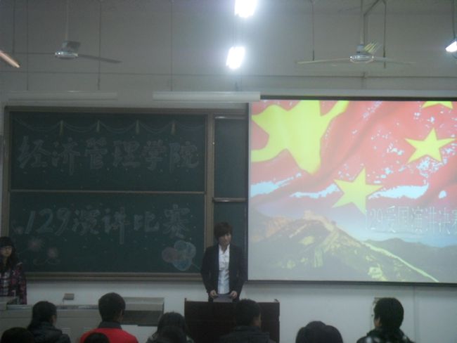 為了紀(jì)念“12.9大學(xué)生愛(ài)國(guó)運(yùn)動(dòng)”77周年,12月2日19:30,經(jīng)濟(jì)管理學(xué)院在新校區(qū)B區(qū)202教室成功舉行了“一二九主題演講”比賽決賽。