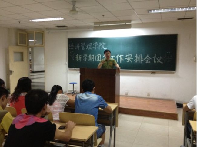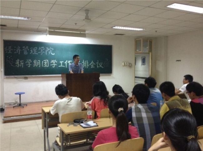 2012年9月4日晚7點半,經(jīng)濟(jì)管理學(xué)院在南區(qū)綜合樓教室舉辦了新學(xué)期團(tuán)學(xué)工作安排會議,會議由經(jīng)濟(jì)管理學(xué)院團(tuán)委副書記樊晨主持,出席本次會議的有經(jīng)濟(jì)管理學(xué)院分黨委副書記蔡強(qiáng)老師、2010級輔導(dǎo)員齊基老師以及2009、2010級學(xué)生干部。