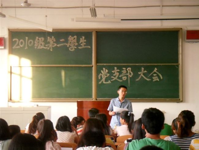 2012年6月7日晚7:30分晚,在B301教室,經(jīng)濟(jì)管理學(xué)院舉行2010級(jí)第二學(xué)生黨支部大會(huì)。黨支部書記齊基老師、黨支部副書記李棟出席大會(huì)。會(huì)議由黨支部副書記李棟主持。