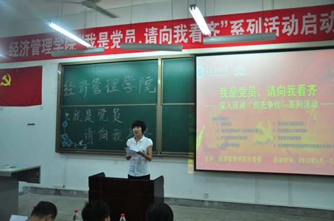 周年和喜迎黨的十八大為契機(jī),經(jīng)濟(jì)管理學(xué)院分黨委在全院學(xué)生黨支部中開展以“我是黨員,請向我看齊”為主題系列創(chuàng)先爭優(yōu)活動。2012年5月31日晚,