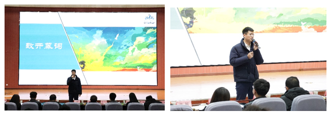 經(jīng)濟(jì)管理學(xué)院學(xué)生辦公室主任李博文致開幕式致辭,他表示,班級(jí)文化作為學(xué)院文化的重要組成部分,不僅是學(xué)生精神風(fēng)貌的集中體現(xiàn),更是培養(yǎng)學(xué)生團(tuán)隊(duì)協(xié)作能力、社會(huì)責(zé)任感及創(chuàng)新精神的重要載體。一個(gè)富有活力的班級(jí)文化能夠激發(fā)學(xué)生的內(nèi)在潛能,促進(jìn)班級(jí)內(nèi)部的和諧與團(tuán)結(jié),為學(xué)院的整體發(fā)展注入新的活力。他強(qiáng)調(diào),班級(jí)文化建設(shè)對(duì)學(xué)生成長(zhǎng)和學(xué)院發(fā)展具有重要意義,鼓勵(lì)同學(xué)們通過此次大賽展現(xiàn)班級(jí)風(fēng)采。