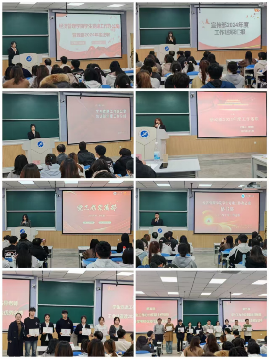學院黨委副書記楊生強對本次述職匯報進行點評總結。他對2024年學院學生黨建工作成果表示肯定,對辛勤付出的黨工辦全體成員表示感謝。他指出,學生黨建工作要始終堅持以習近平新時代中國特色社會主義思想為指導,深入貫徹黨的二十大精神和學校第三次黨代會精神,加強黨員教育管理,創(chuàng)新教育方式,運用新媒體技術,豐富學習資源,增強黨員教育的針對性與實效性。優(yōu)化活動開展,緊扣學生需求,設計主題鮮明、形式多樣的活動,提高學生參與度與獲得感。推進黨建工作與學生工作融合,將黨建融入學生學習、生活、就業(yè)等環(huán)節(jié),實現(xiàn)黨建工作與學生全面發(fā)展的良性互動。最后,他對大家提出四點要求和希望:一是強化學思悟踐,引領學生黨員學深悟透習近平新時代中國特色社會主義思想與黨的二十大精神,借專題講座、讀書分享會、主題黨日等活動,堅定政治信仰,筑牢思想根基。二是加強組織建設,優(yōu)化支部架構,選優(yōu)配強支部班子,嚴格落實“三會一課”制度,增強學生黨組織的凝聚力和戰(zhàn)斗力。三是創(chuàng)新黨建工作方式,融合新媒體搭建線上學習平臺,推送黨建資訊,開展志愿服務、社會實踐等多元活動,增強黨建吸引力與感染力。四是推動黨建工作與學生成長深度融合,激勵學生黨員在學習、科研上帶頭鉆研創(chuàng)新,關心其心理健康,助力全面發(fā)展,實現(xiàn)黨建與學生成長同頻共振。