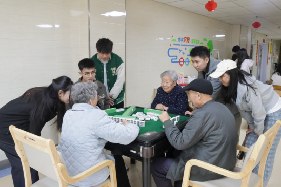 在院方工作人員的引導(dǎo)下,志愿活動(dòng)分兩組進(jìn)行,一組志愿者陪伴老人散步、聊天,相互分享生活和校園趣事。志愿者們專注地傾聽,不時(shí)回應(yīng),讓老人們感受到來自大學(xué)生的溫暖與關(guān)愛。另一組志愿者進(jìn)入房間探望,志愿者們輕輕敲開房門,為老人們整理房間、讀報(bào),或傾聽他們講述往事,還陪伴老人一起進(jìn)行棋牌游戲,充滿了趣味與溫情。