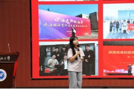 隨后,郭麗瑋以《步履穩(wěn)健心向遠(yuǎn),夢馭風(fēng)云山海間》為題分享了她的學(xué)習(xí)經(jīng)歷。從“學(xué)”到“行”再到“責(zé)”,她以俄語專業(yè)跨考馬克思主義專業(yè)的親身經(jīng)歷詮釋了如何在持續(xù)學(xué)習(xí)中探尋發(fā)展方向。求學(xué)路上,她憑借不懈努力斬獲多項(xiàng)榮譽(yù),用實(shí)際行動(dòng)證明“努力可破萬難”,激勵(lì)在場學(xué)子在本科階段深耕專業(yè)知識(shí),提升個(gè)人修養(yǎng),爭做理論學(xué)習(xí)的“深耕者”。同時(shí)也要多參與社會(huì)實(shí)踐活動(dòng),去做調(diào)研報(bào)告,傳承紅色基因,成為紅色精神的“傳承者”,讓馬克思主義理論在解決祖國發(fā)展實(shí)際問題、回應(yīng)群眾“急難愁盼”中煥發(fā)蓬勃生命力。最后,針對青年學(xué)生干部,她呼吁大家堅(jiān)守服務(wù)奉獻(xiàn)初心,以實(shí)際行動(dòng)踐行責(zé)任擔(dān)當(dāng),做好服務(wù)奉獻(xiàn)的“踐行者”,用志愿行動(dòng)書寫青春華章。