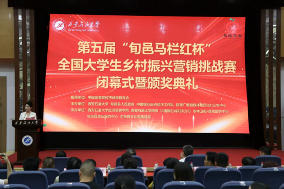 7月3日,第五屆“旬邑馬欄紅杯”全國大學(xué)生鄉(xiāng)村振興營銷挑戰(zhàn)賽閉幕式暨頒獎(jiǎng)典禮在西安石油大學(xué)雁塔校區(qū)會(huì)議中心順利舉行。