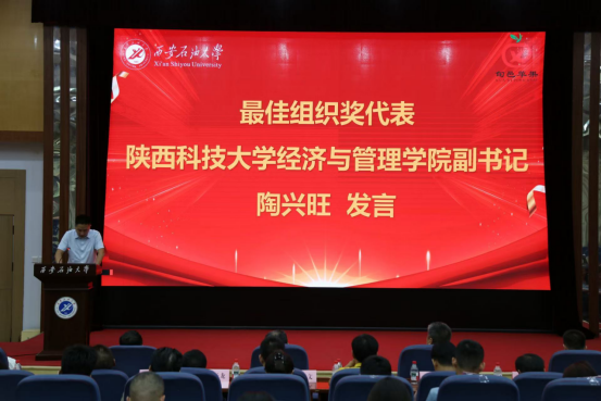 陜西科技大學(xué)經(jīng)濟(jì)管理學(xué)院黨委副書記陶興旺作為最佳組織獎(jiǎng)代表發(fā)言。他介紹了學(xué)校通過頂層設(shè)計(jì)、導(dǎo)師指導(dǎo)、經(jīng)費(fèi)支持等措施保障師生參賽的情況,提議依托賽事平臺(tái)構(gòu)建人才培養(yǎng)長效機(jī)制,持續(xù)提升學(xué)生社會(huì)認(rèn)知、專業(yè)技能和團(tuán)隊(duì)協(xié)作意識。