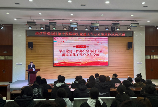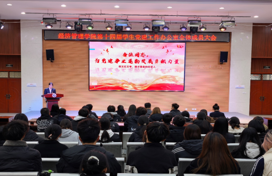 為深入貫徹習(xí)近平新時(shí)代中國(guó)特色社會(huì)主義思想,提升學(xué)生黨建工作人員履職能力,接續(xù)發(fā)揮先鋒模范作用,11月19日,經(jīng)濟(jì)管理學(xué)院在鄠邑校區(qū)崇文樓118多功能廳舉行第十四屆學(xué)生黨建工作辦公室全體成員大會(huì)。經(jīng)濟(jì)管理學(xué)院黨委副書(shū)記趙紀(jì)飛、學(xué)生工作辦公室副主任張碩、組織員曹萌,學(xué)生黨建工作辦公室指導(dǎo)老師王業(yè)林、學(xué)生黨建工作辦公室全體成員共180余人參會(huì)。