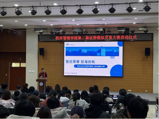啟動(dòng)儀式上,交通銀行南二環(huán)支行副行長(zhǎng)史瑋詳細(xì)介紹了大賽的參賽規(guī)則、獎(jiǎng)項(xiàng)設(shè)置及賽程安排,并對(duì)參賽學(xué)子表達(dá)了誠摯的祝愿。中信證券陜西分公司業(yè)務(wù)處理中心副總經(jīng)理王艷麗結(jié)合當(dāng)前市場(chǎng)動(dòng)態(tài),為同學(xué)們深入解讀了資本市場(chǎng)發(fā)展趨勢(shì),并介紹了賽事過程中可提供的專業(yè)支持。