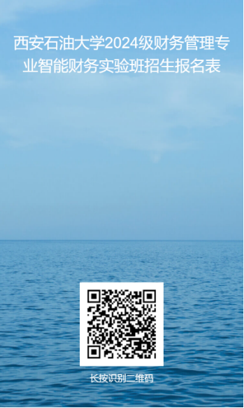 1.志愿填報。面向全校發(fā)布財務(wù)管理專業(yè)智能財務(wù)實驗班招生通知,通過問卷星(https://www.wjx.top/vm/Q0XRUo2.aspx#)填寫《西安石油大學(xué)2024級財務(wù)管理專業(yè)智能財務(wù)實驗班招生報名表》(每一位學(xué)生只能填寫1個實驗班報名表,多填、多報無效)。